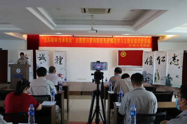 活动围绕六个环节开展:在“唱一首歌曲”环节,与会人员共同学唱抗疫主题曲《党旗飘扬的方向》,用歌声向前线英勇抗疫的一线人员致以最崇高的敬意。在“看一段视频”环节,与会人员通过观看短片《武汉抗疫的90后》,感受到新时代青年在国家需要的时候挺身而出,践行着与国共渡难关的决心,彰显高度的责任感与担当精神。在“学一份寄语”环节,航通公司团委书记贲为宇领学了《习近平总书记五四青年节寄语》,鼓舞广大青年团员继承和发扬五四精神,坚定理想信念,站稳人民立场,练就过硬本领,投身强国伟业,始终保持艰苦奋斗的前进姿态。在“学一个模范”环节,由公司团委副书记马诗妙向与会人员讲述甘如意、朱海秀两位90后,以及公司办公室主任黄南华的抗疫先进模范故事,共同学习了新时代青年的“苟利国家生死以,岂因祸福避趋之”的责任与担当精神,以及坚守岗位、默默奉献的航通精神,他们的抗疫故事深深感动着在场的每一个人。在“谈一番感悟”环节,现场与会人员及视频分会场参会人员积极分享了心得感受和身边的真实故事,对广大疫情防控人员及为公司疫情防控和复工复产做出贡献的同事表达诚挚的感谢。在“许一个承诺”环节,贲为宇带领大家重温入团誓词,坚定为共产主义而奋斗的铮铮誓言。